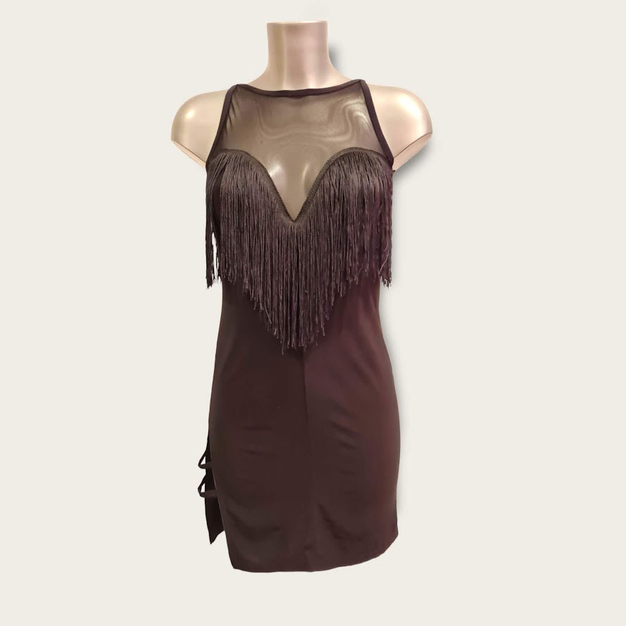 Amia- sexy no sleeves stretch net latin fringe practice dance wear