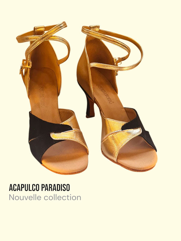 Chaussures de danse latine/ tango pour femmes marque SOULDance, design romantique noir et or !