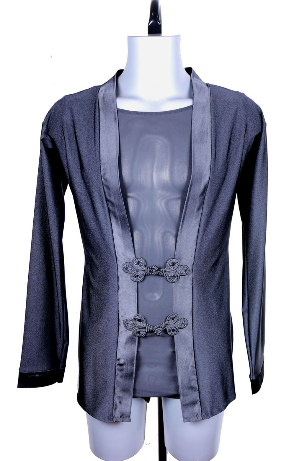 Tenue de danse latine deux pièces pour homme avec un top intérieur sans manche en tulle noir. *Cet article est en stock en taille M/L tel que présenté sur la photo pour un envoi immédiat.