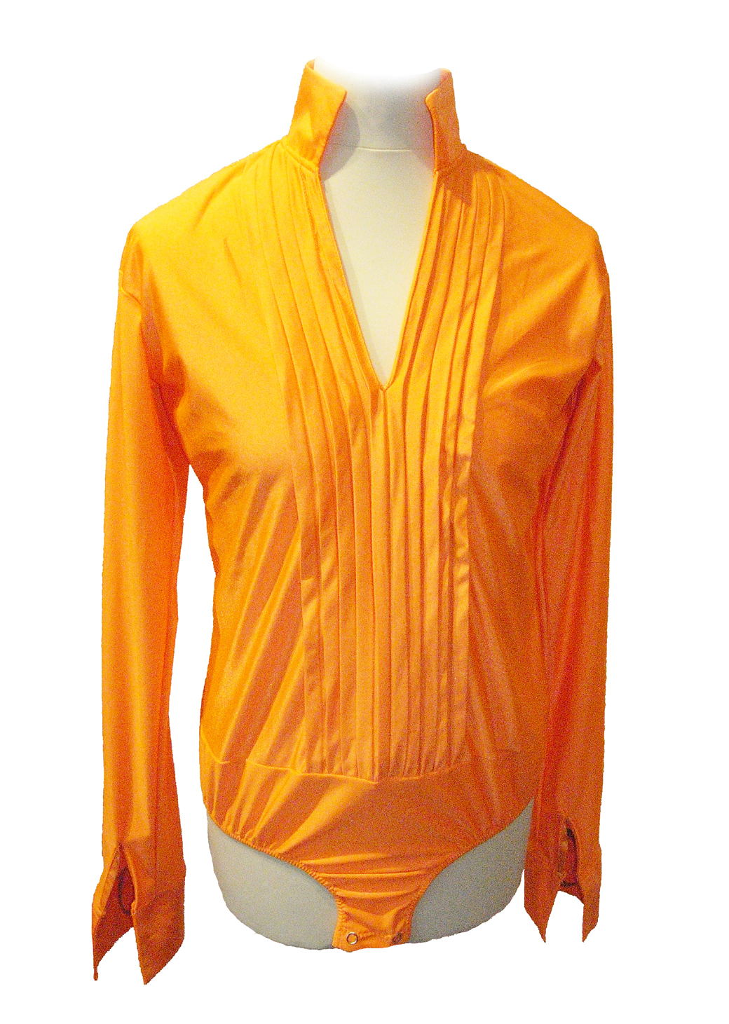 Chemise de danse latine pour homme idéale pour vos compétitions. Le design de cette tenue de danse tient son originalité dans une coupe en V accompagnée de plis sur le devant. Ce modèle est avec un slip attaché.
