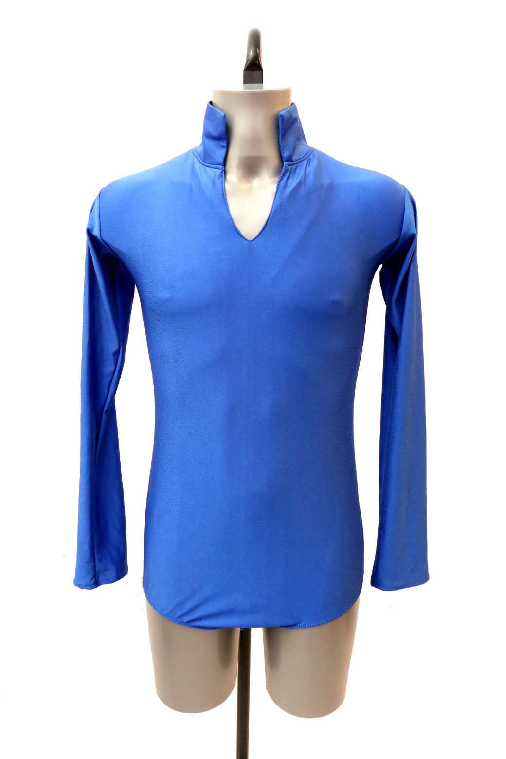 Ce maillot de danse latine pour homme personnalisé est composé d'un col haut et d'une coupe en V sur le devant.