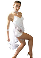 Robe de danse latine blanche ornée de strass Swarovski pour un effet de pure brillance. *Robe latine en stock en taille XS.