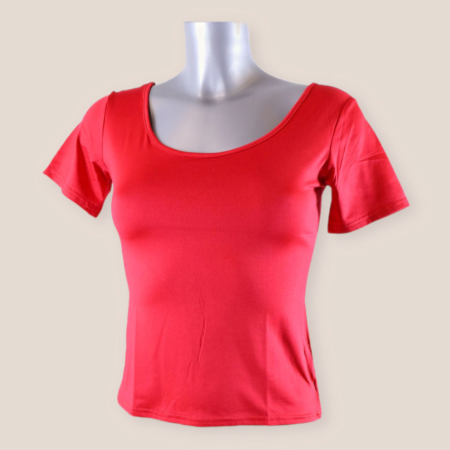 Simple red top with U round neck for the front. Please also check the practice skirts category to find out your matching items. In stock size S/M Available in red,black,leopard