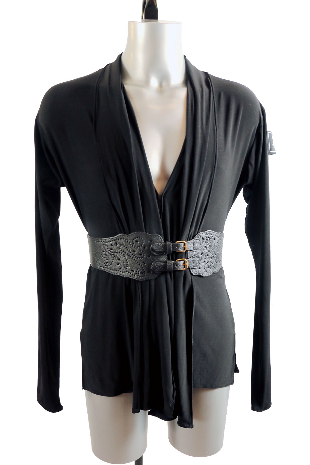Elegant pleated scarf style Latin men's shirt without brief. Delicate leather curve belt to tight your waist for a slim silhouette in dancing.