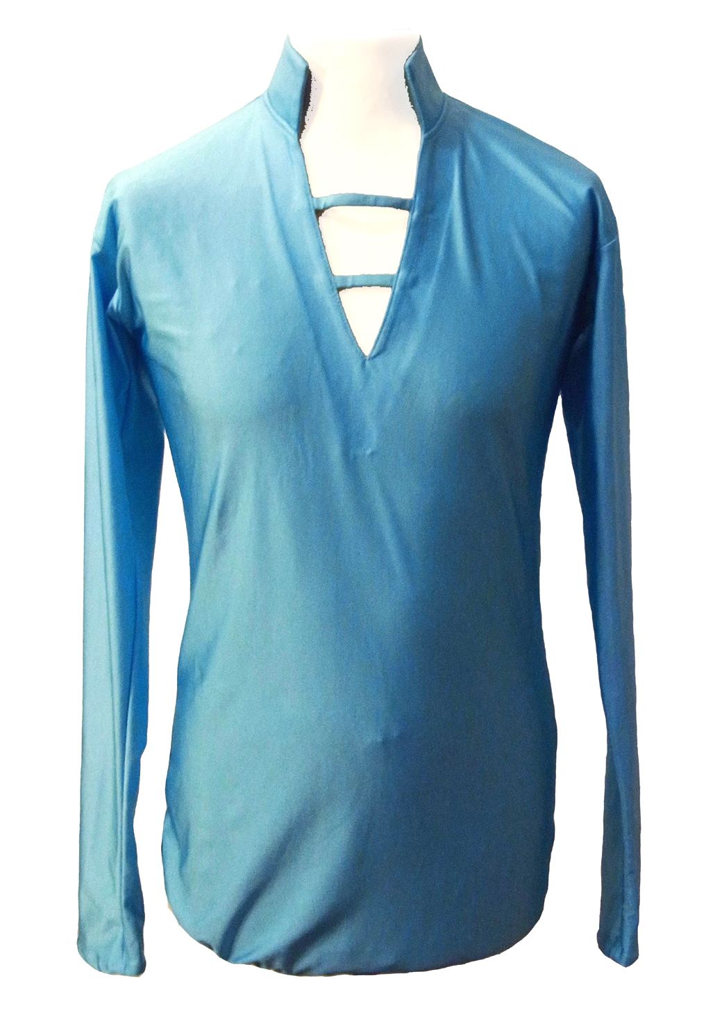 The shirt is designed with an open snap brief below. It is very flexible for professional dancing movements. Fabric is comfortable soft touch to let your skin to breathe and easy to dry after sweating a lot.