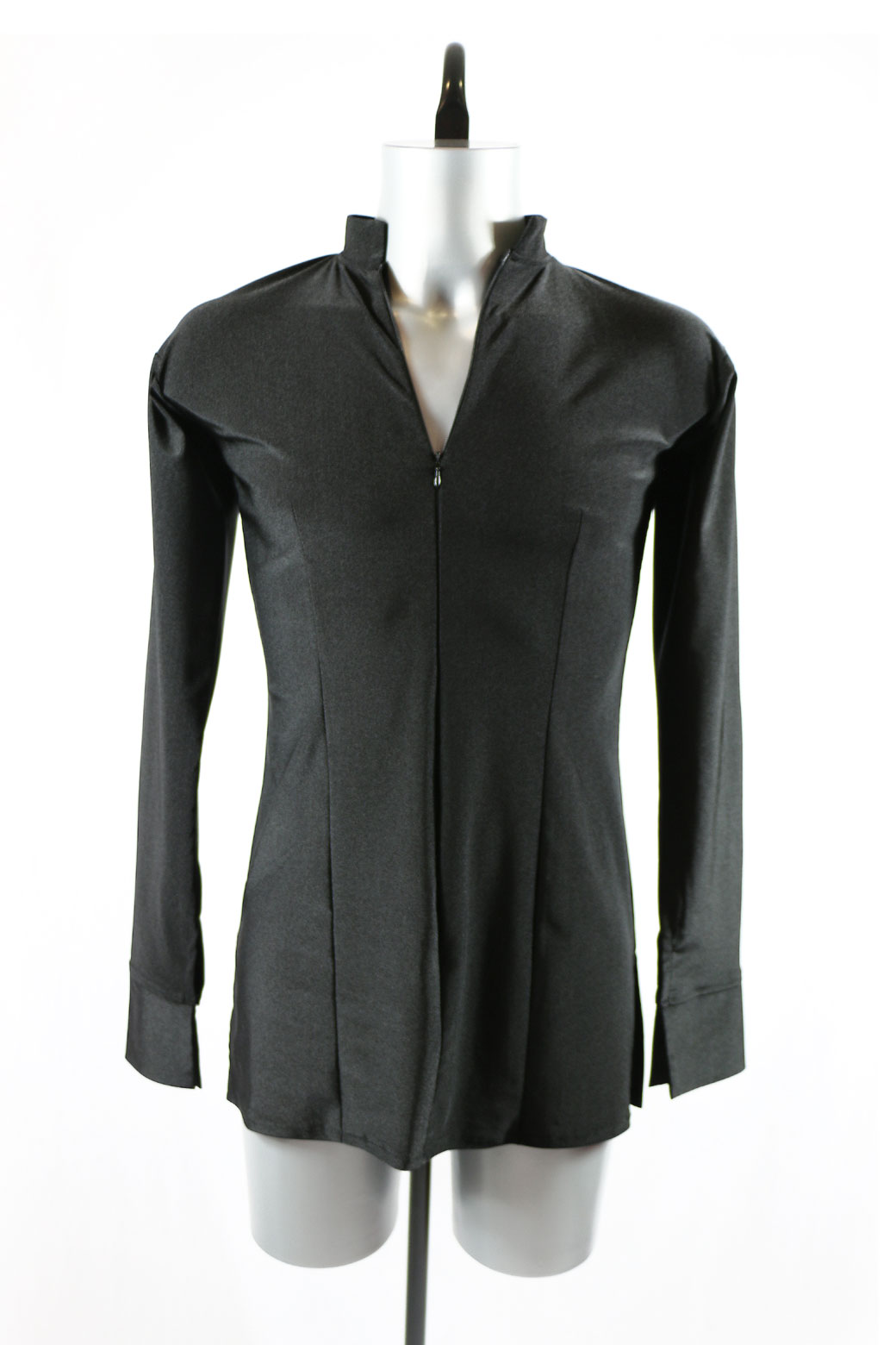 One piece Latin Men's dance shirt without brief. Elegant style of collar and hidden zip in the front to adjust your opening.
