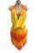 Colorful latin dress design with a special hand painting grading orange on top and skirt. Be amazing with this fringe latin dress available in our showroom in US size 8.