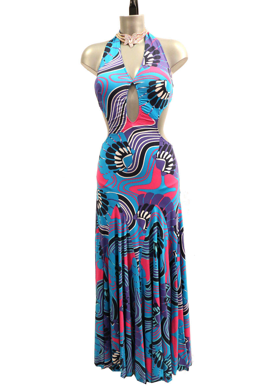 Full printed lycra standard dress perfect for american smooth dancing. The dress is with a bodysuit inside. Additional accessories are included with the dress. *Limited printed lycra edition.
