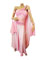 Elegant ballroom/smooth dress with one-side decorated pleated mesh top and wrapes for the waist. Skirt is pastel shaded pink chiffon. The whole dress is with bodysuit and built-in panty.