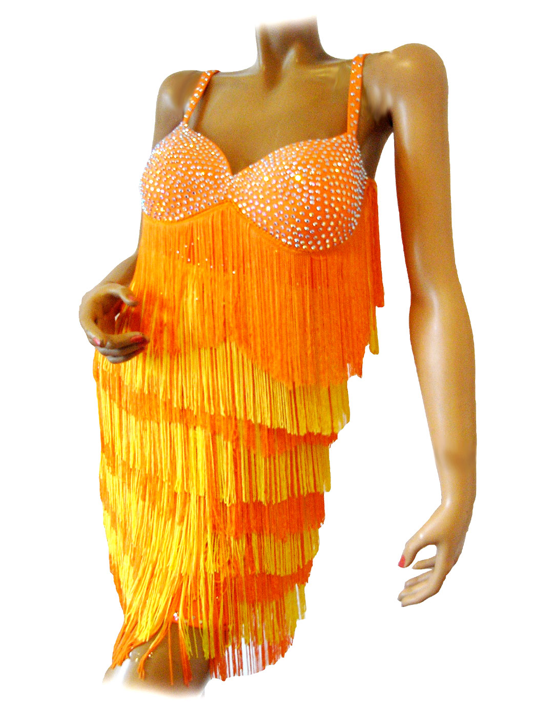 Bi-color professional latin fringes competition dance dress fully decorated with stones, especially on bra for a Charleston style. *Fringes latin dress design with a bodysuit inside