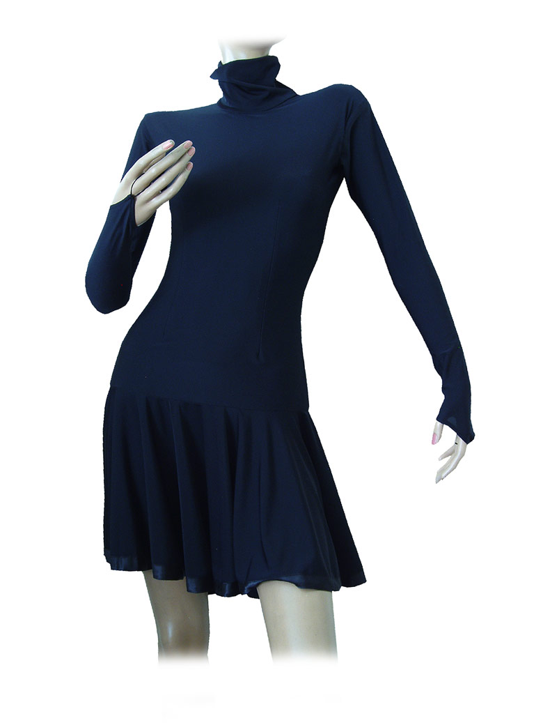 Fully body-covered high collar latin dress with fitted over-hip skirt.
