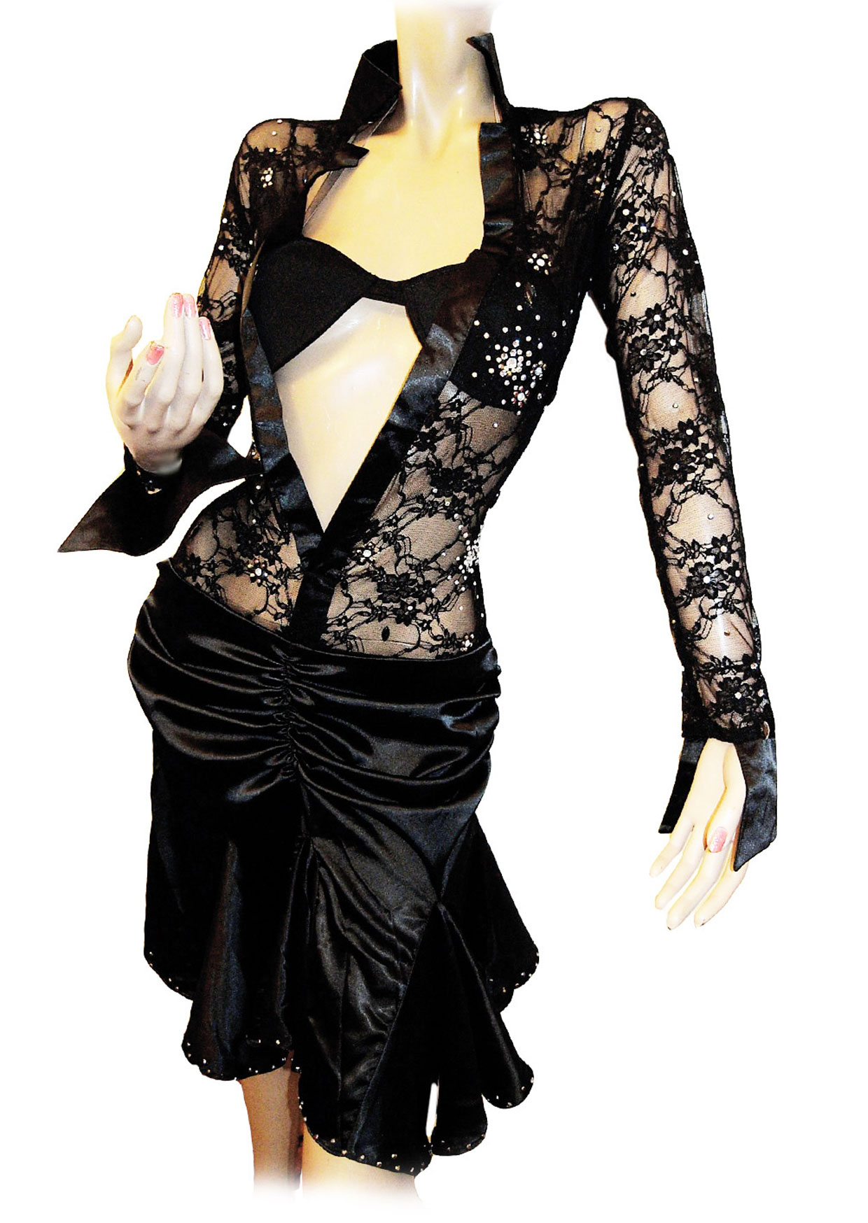 Ruffles satin skirt with a high split on the right side to let show your leg movements. Built-in panty included under skirt.