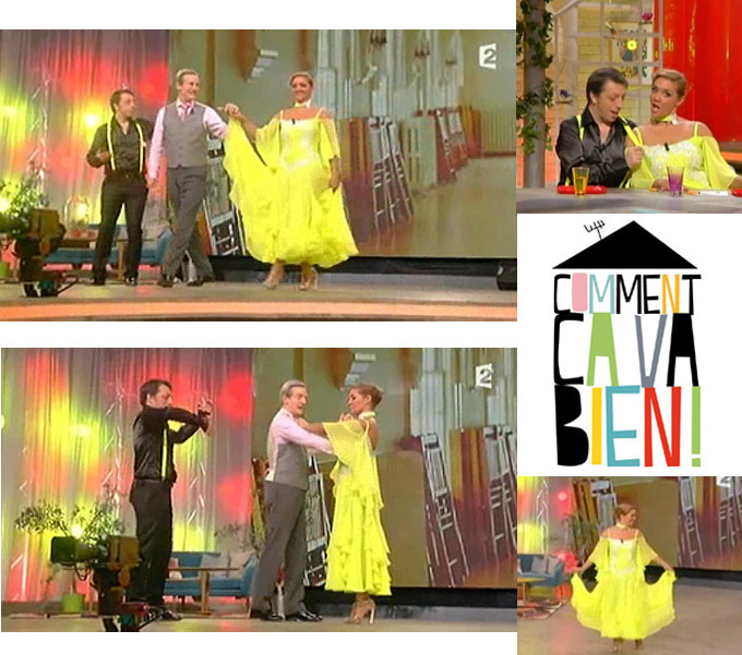We were delighted to showcase our creations on the popular French TV show Comment ça va bien, hosted by Stéphane Bern on France 2. During a special dance segment, our costumes brought color, movement, and elegance to the screen, blending haute couture with the joyful spirit of ballroom dance.